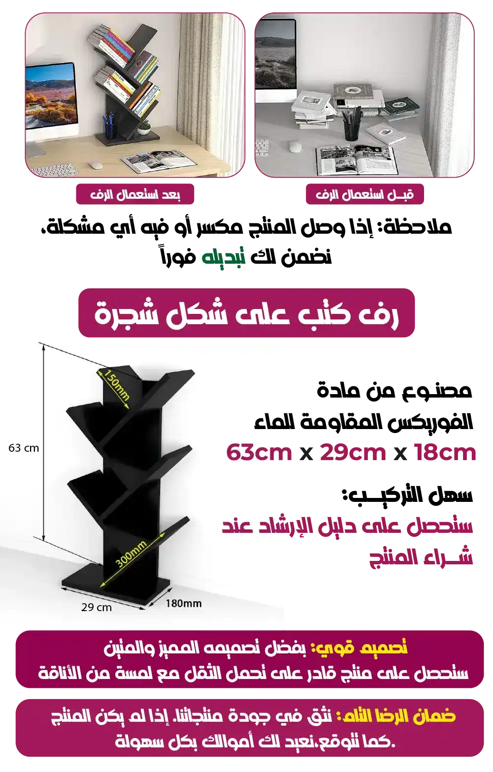رف الشجرة 🌳 هو الحل المثالي! بفضل تصميمه الإبداعي المستوحى من الطبيعة، يمكنك تنظيم كتبك📚، كراريسك، وحتى ديكورك🏺 بأسلوب عصري وجذاب.